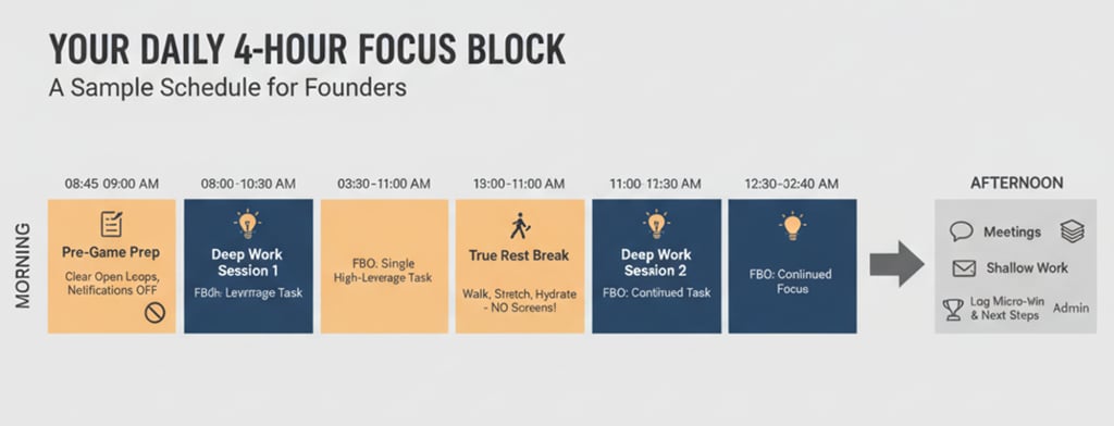 Your 4-hour focus block becomes your own operating window, a deliberately scheduled, high-energy daily span, dedicated to work that moves the needle.